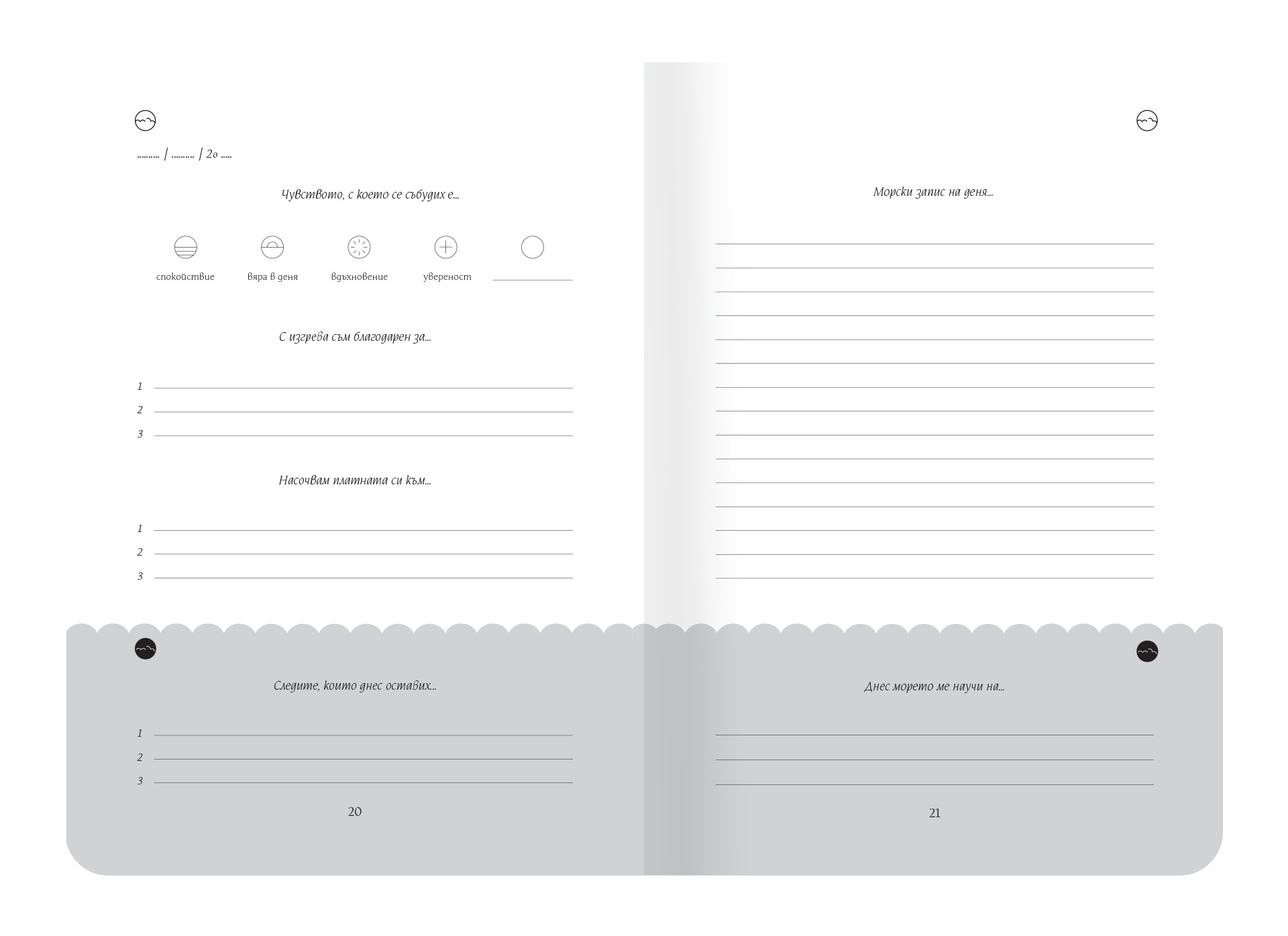 Преди да заспиш, прибери мрежите на деня. Погледни какви дарове си извадил от водата – радостите, които са те докоснали, уроците, които вятърът ти е прошепнал. Когато записваш малките моменти започваш да градиш по-смислено утре – още преди да се е съмнало.